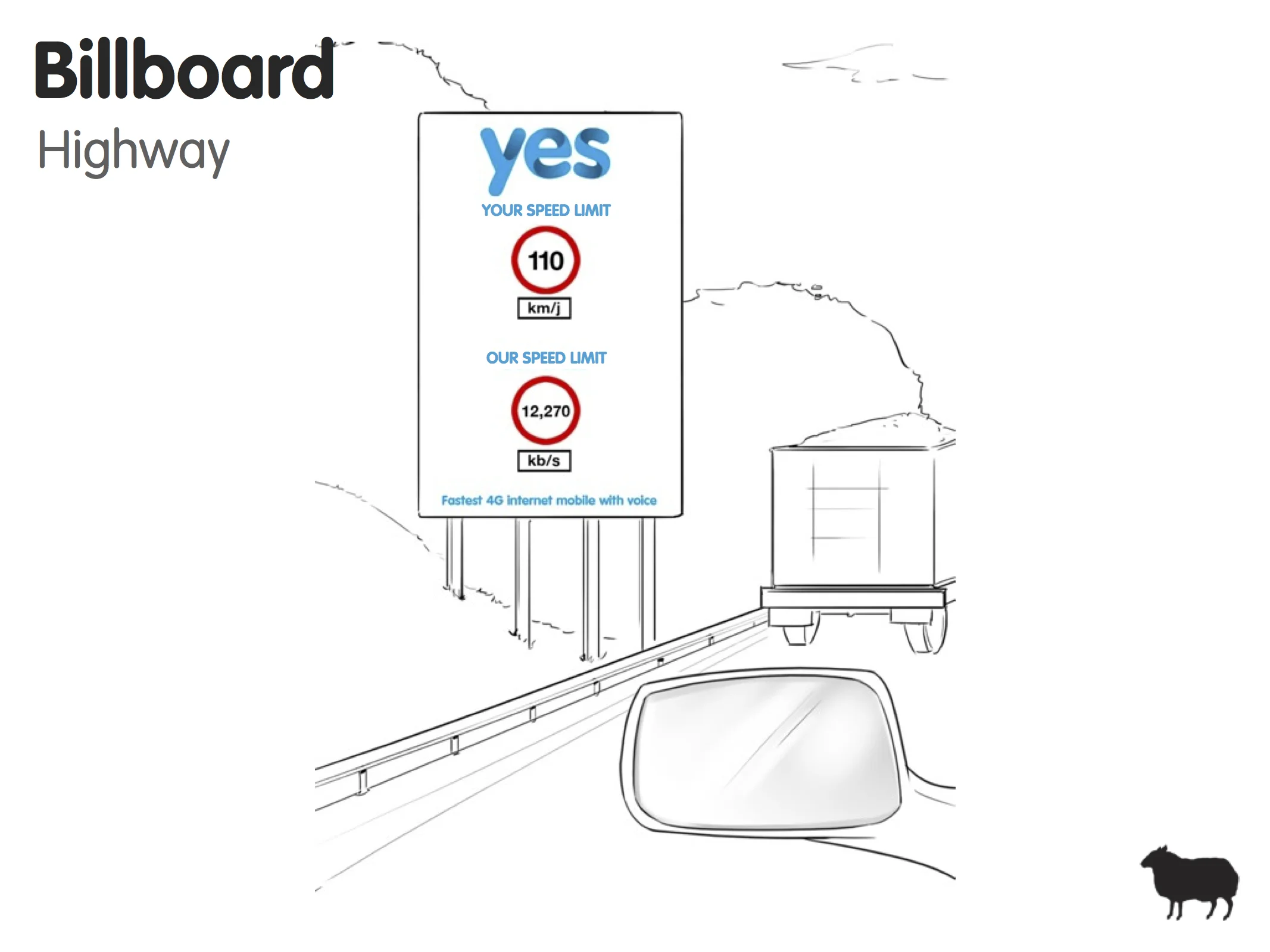 Malaysians frequently drive for long distances on the highway. We placed billboards advertising the super-fast 4G internet speeds on the North-South highway.
